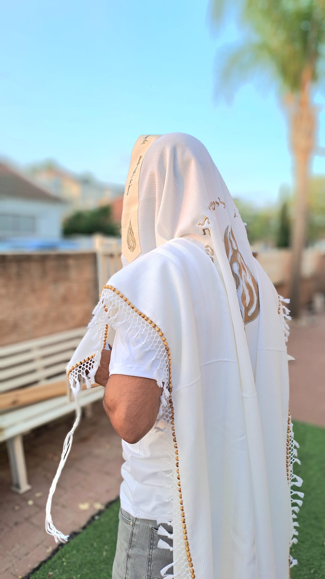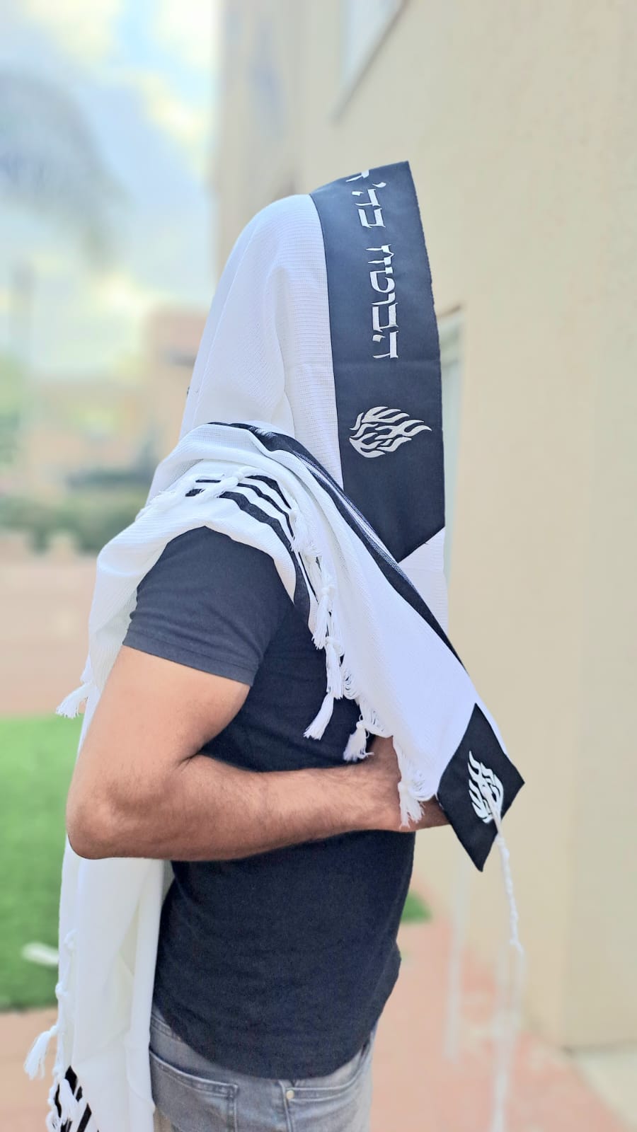 טליתות בסגנון ברסלב עם האש שלי בשילוב אומנות יהודית מיוחדת בתוך תהליך הכנת הטלית.