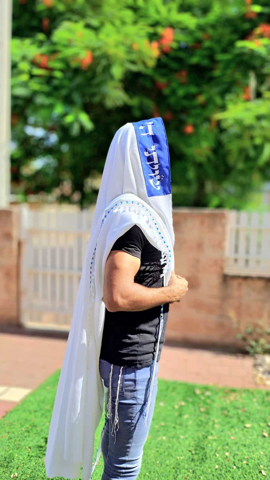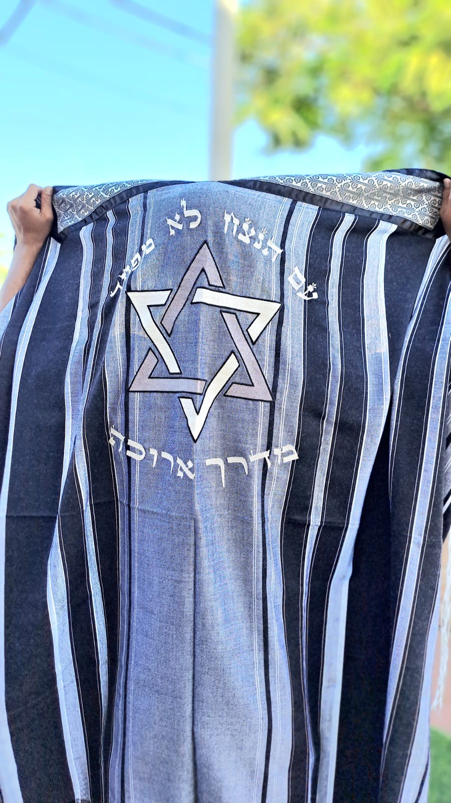 טליתות בסגנון ברסלב עם האש שלי בשילוב אומנות יהודית מיוחדת בתוך תהליך הכנת הטלית.