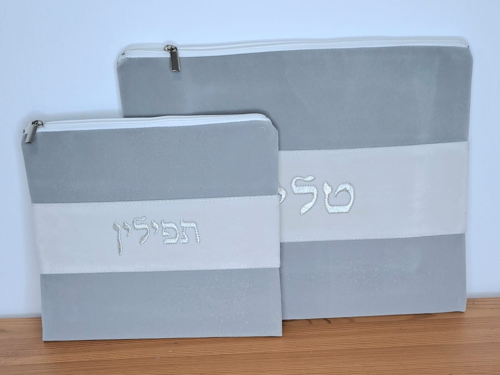 בנוסף, תוכלו למצוא כיסויי טלית ותפילין יוקרתיים עשויים מעור אמיתי או דמוי עור. עם אפשרות לעשות רקמת שם אישית על כיסוי הטלית והתפילין.