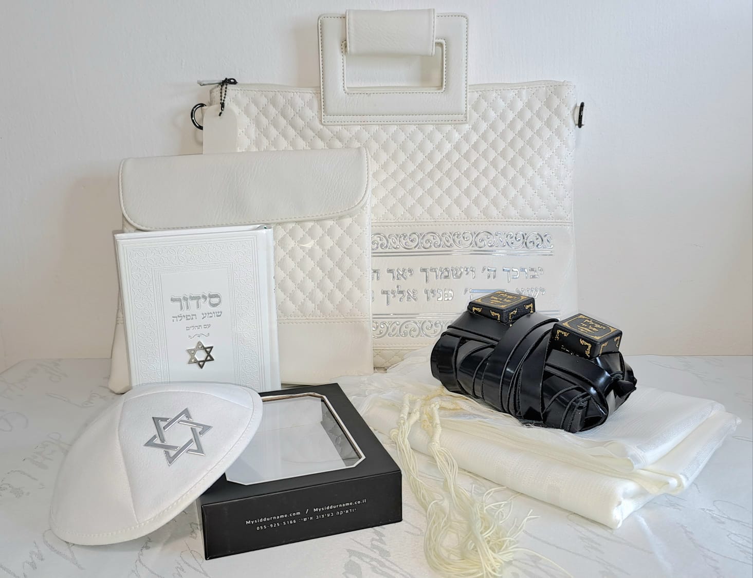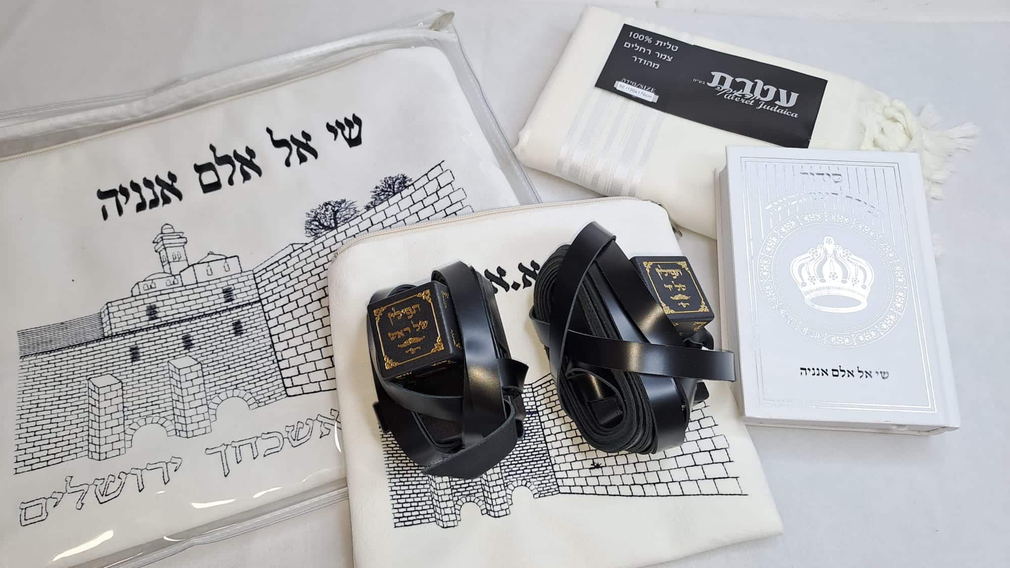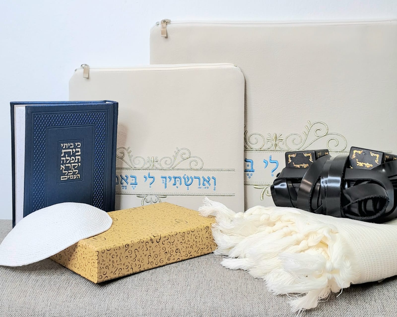 תוכלו למצוא גם סטים לבר מצווה, הכוללים טלית מהודרת מעוצבת ברמה גבוהה, כיסוי טלית ותפילין יוקרתי. על מנת להשאיר את הרגע החשוב הזה של הבר מצווה עמוק בלב.