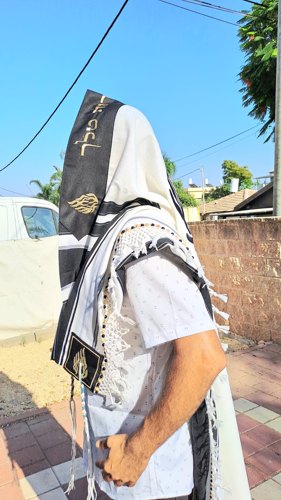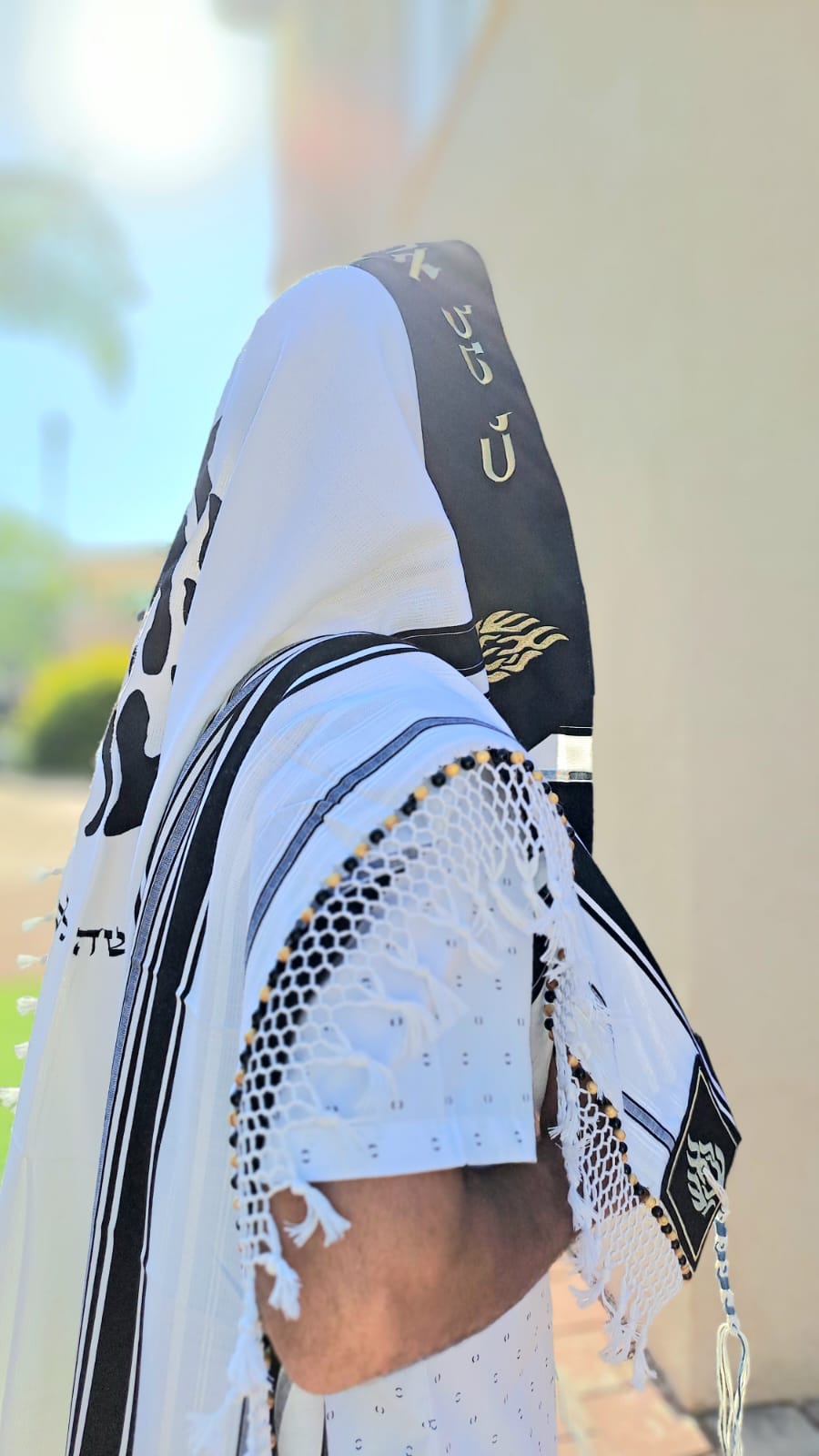 טלית מהודרת בעיצוב צבעים זהב נוצץ ושחור.. עם רקמת האש שלי.. 🔥