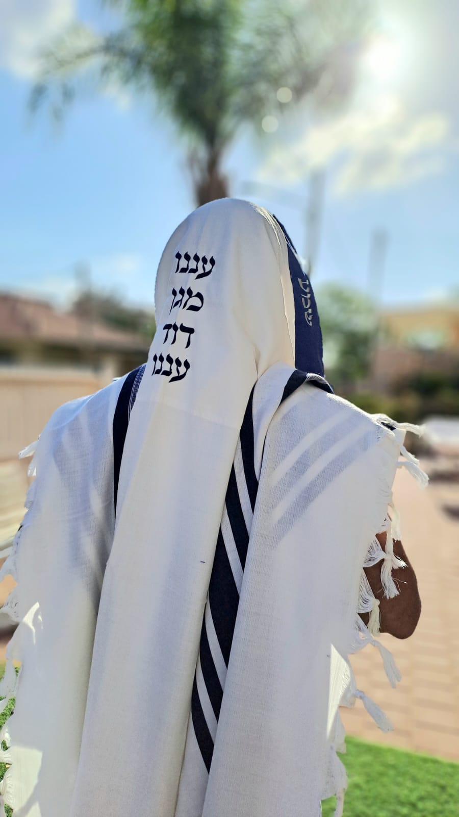 הבד של הטלית עצמו עשוי 100% צמר רחלים באריגה נעימה נוחה וקלילה על הגוף.. כאשר לכל אורך הטלית פסים בצבע כחול כהה… ובתוך הטלית עצמה יש ביטנה פנימית לשמירה על הבד של הטלית שלא יתלכלך.. 🔥