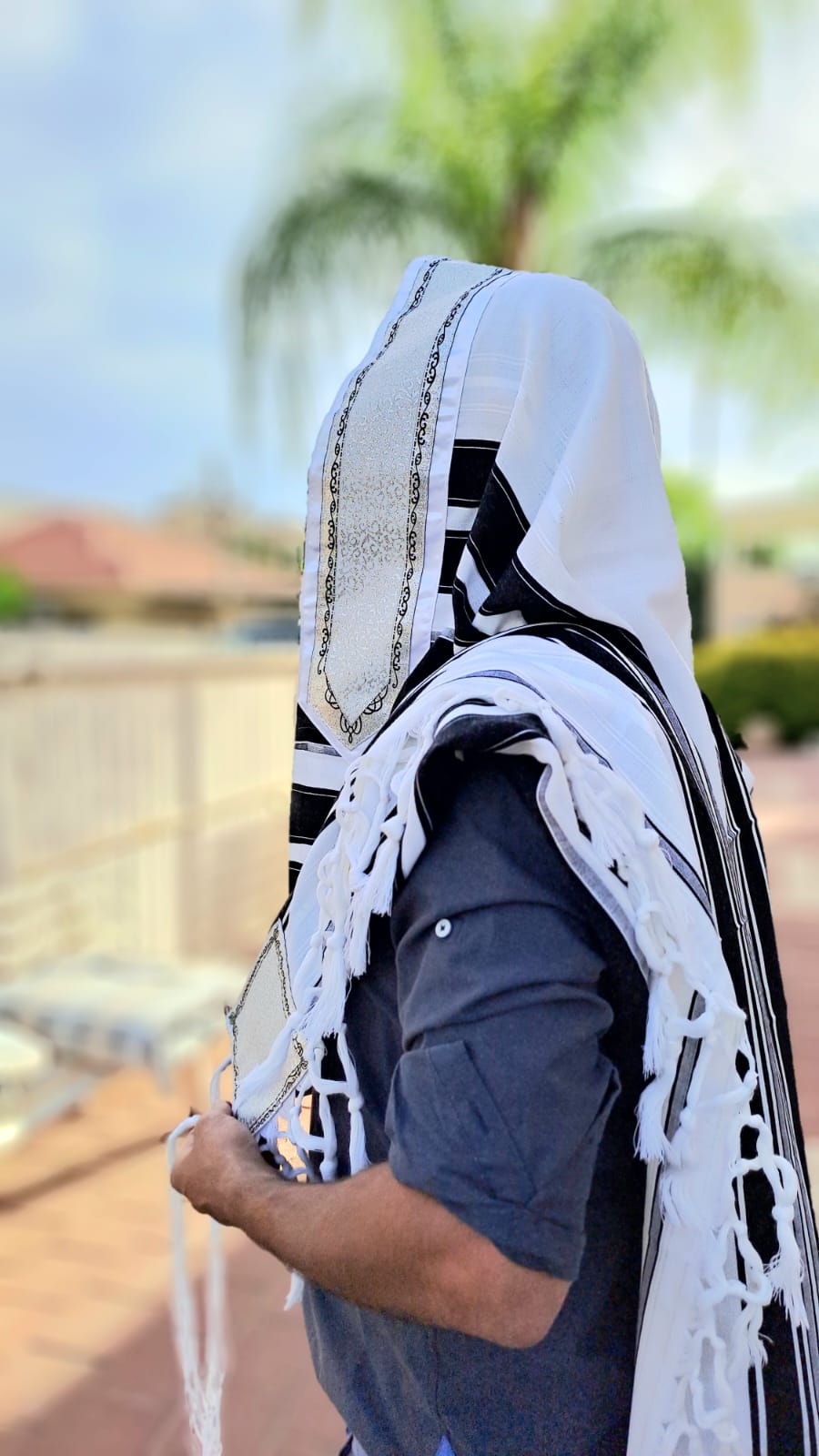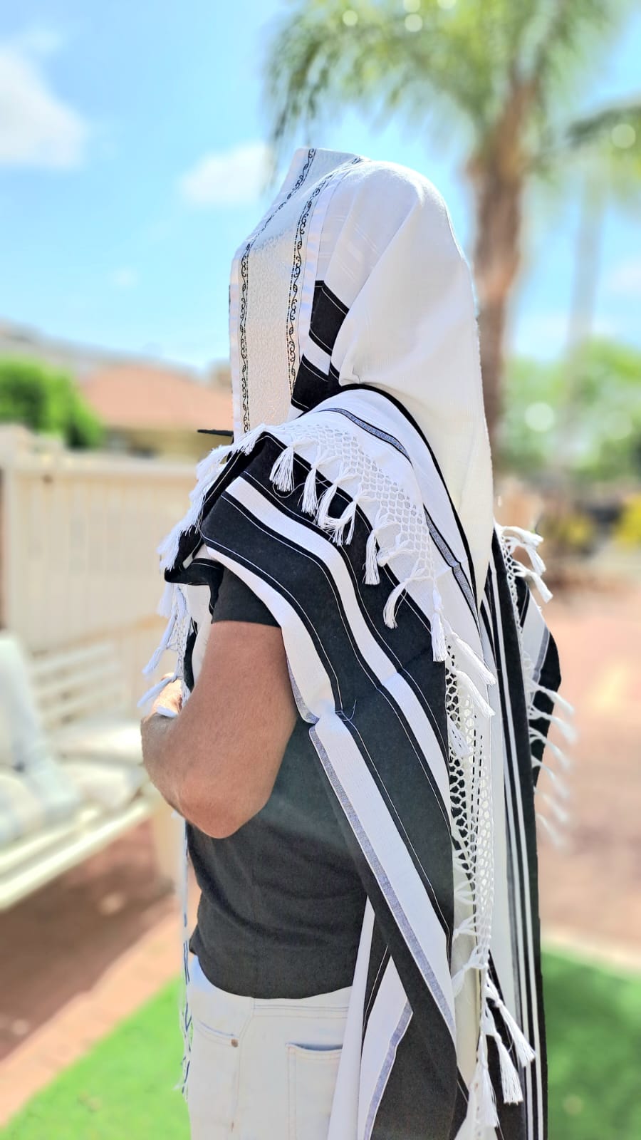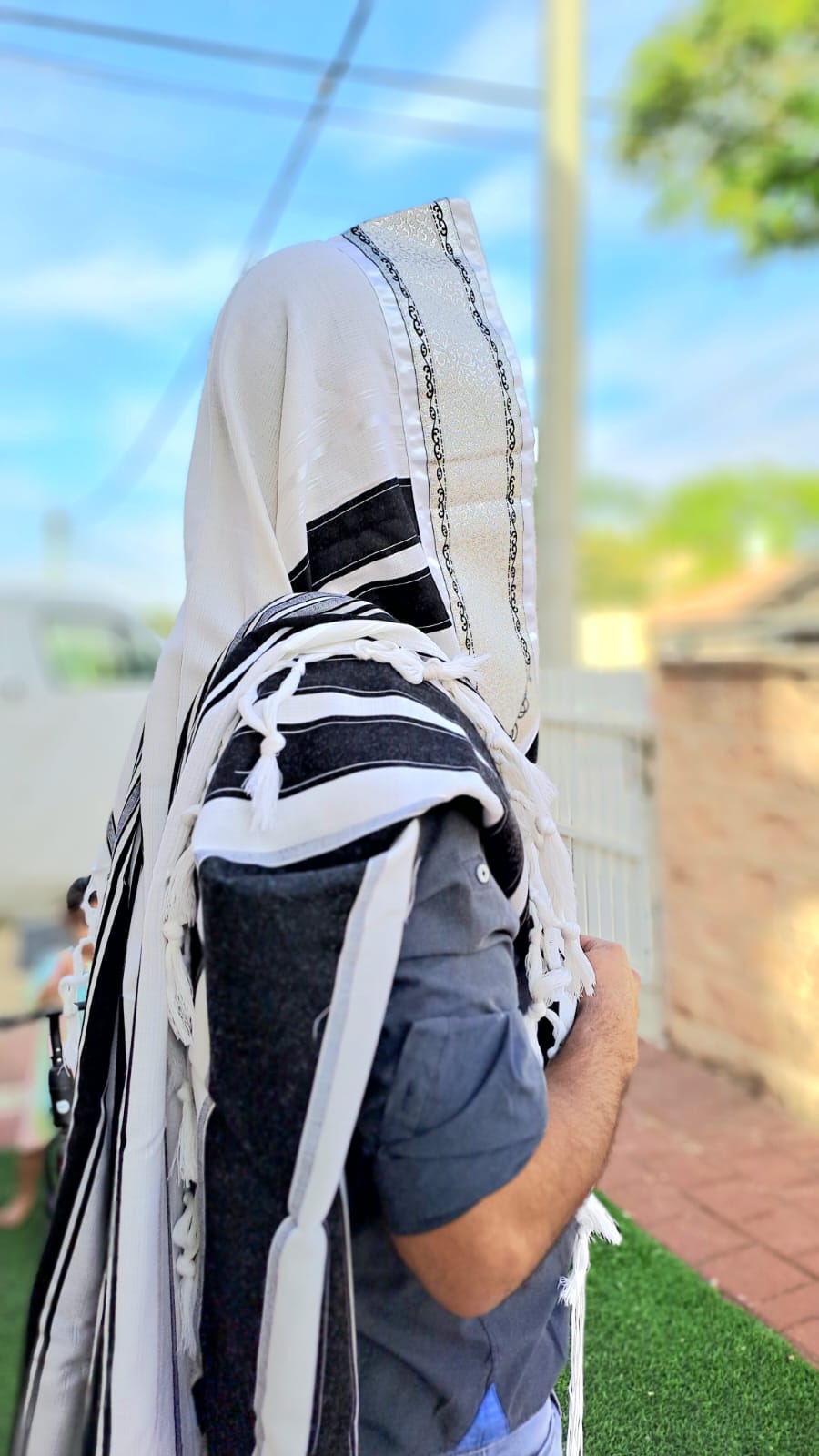 הפסים השחורים שעל הטלית עשויים בצורה עבה.. עיצוב שנותן לטלית את המראה האותנטי של הטלית התימנית. 💎
