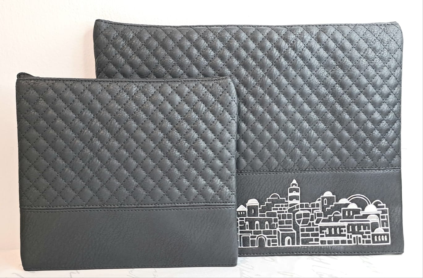כיסוי טלית ותפילין דמוי עור "ירושלים" כסף