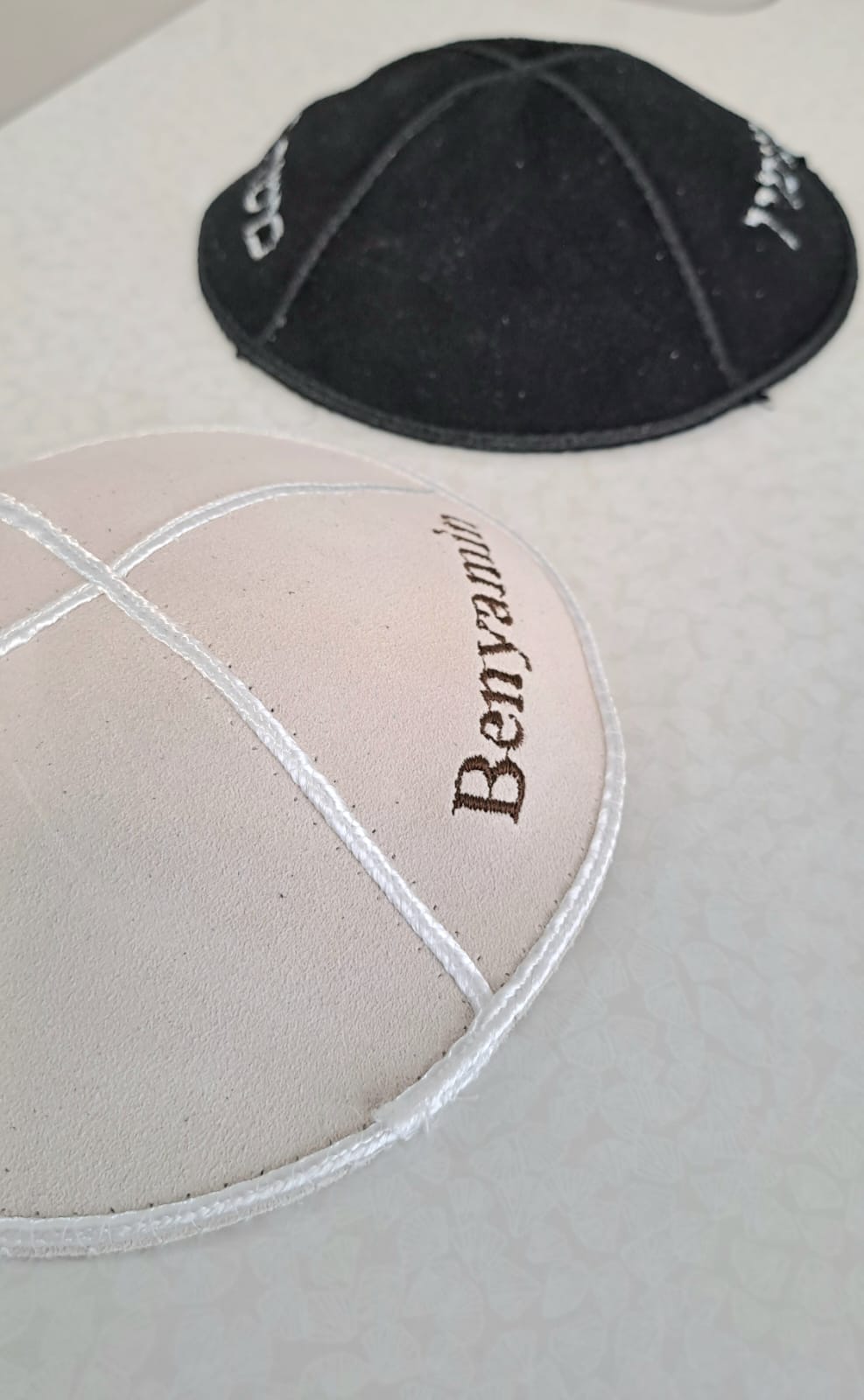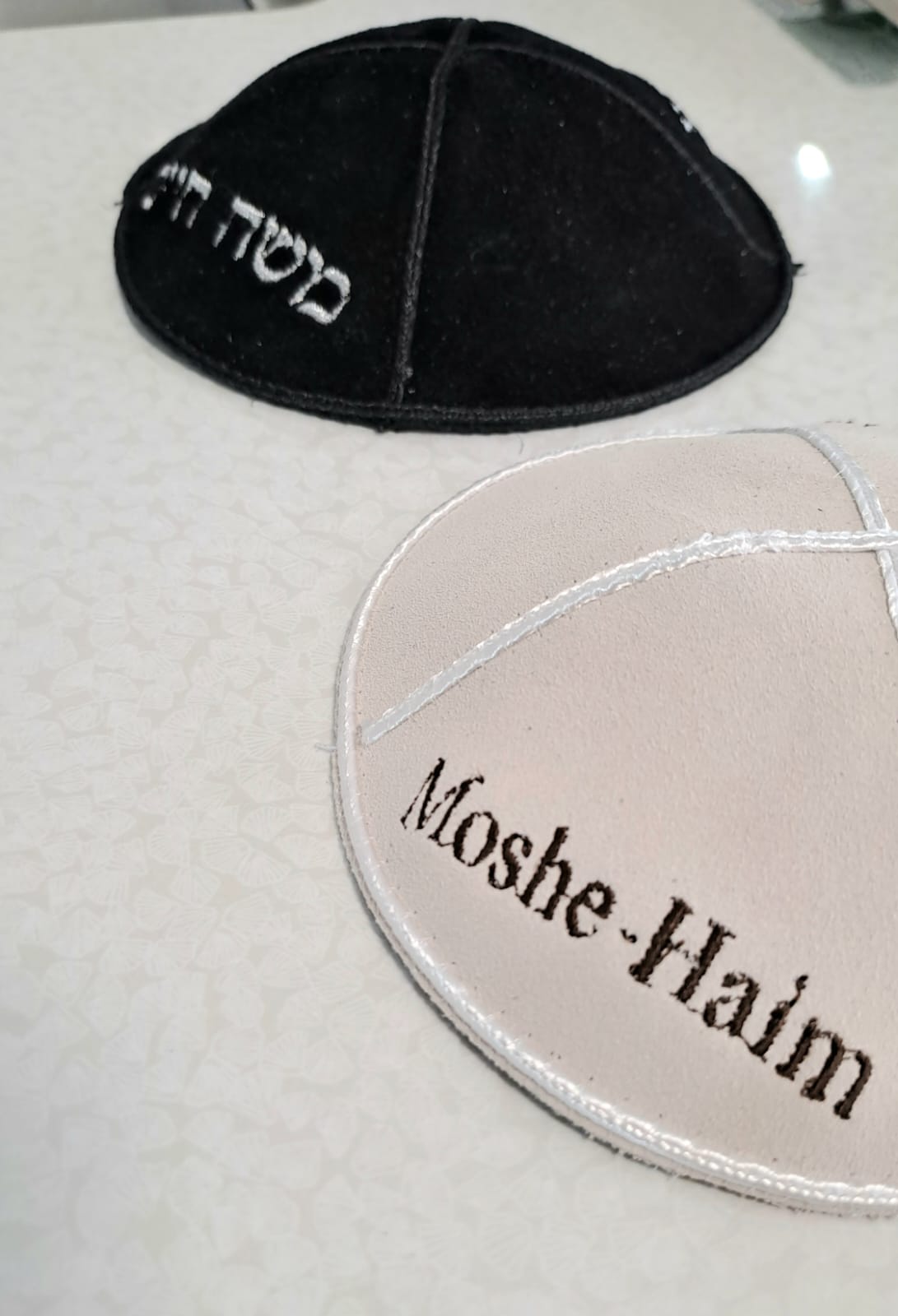 ניתן להזמין את הרקמה בעברית או באנגלית 💎 או להזמין את הכיפה ללא רקמה.