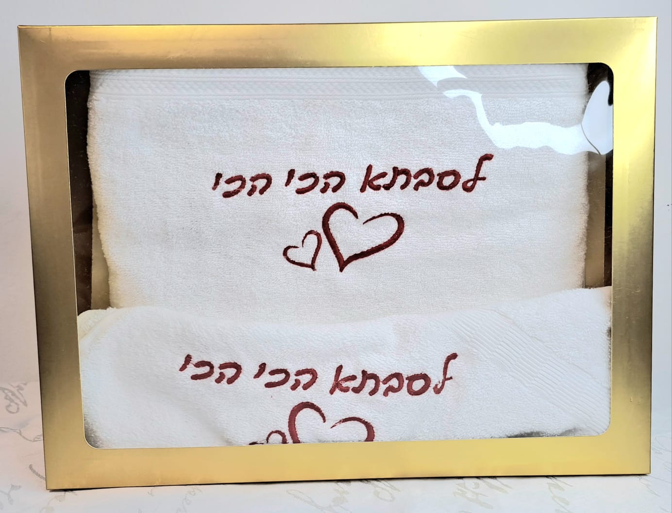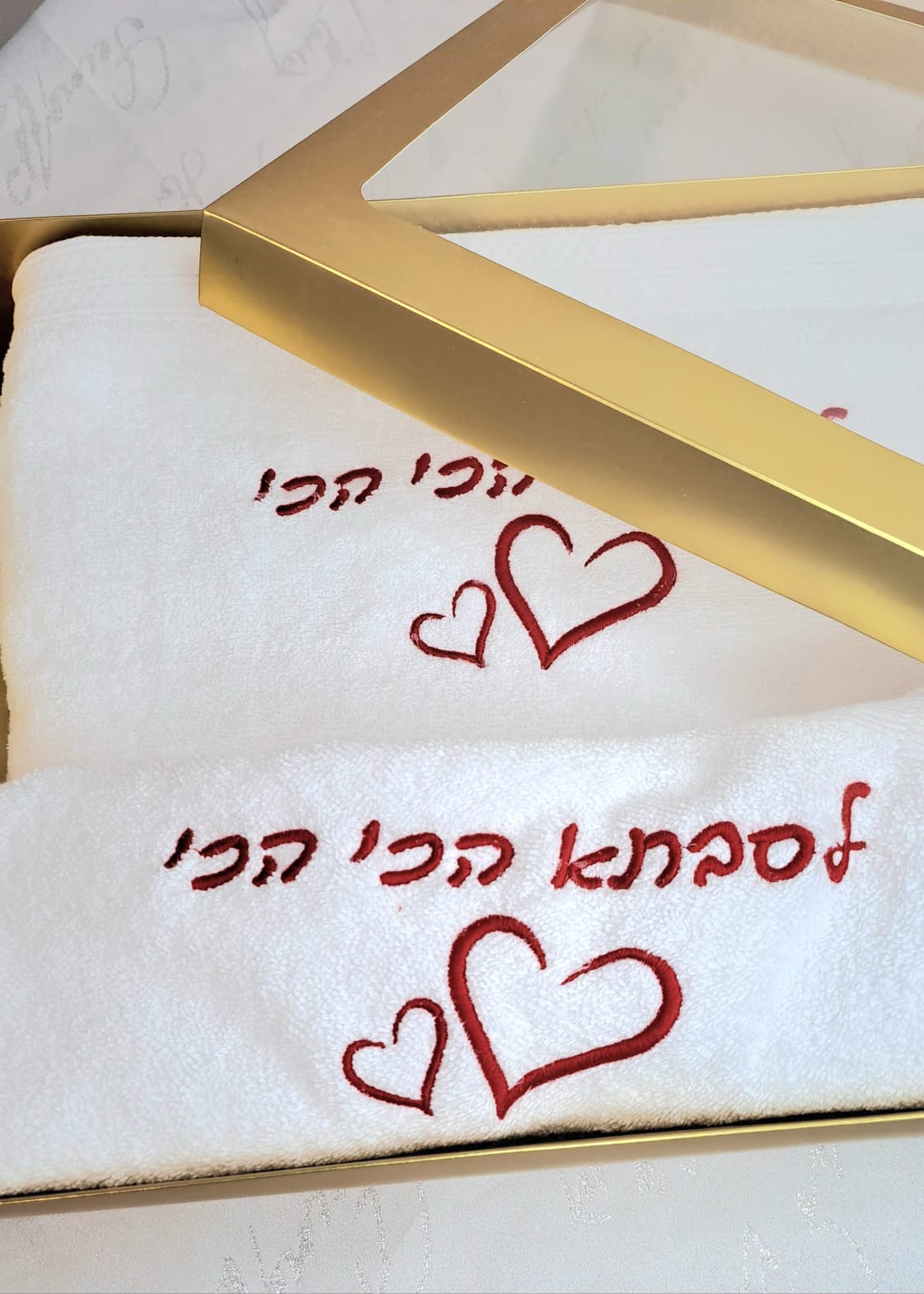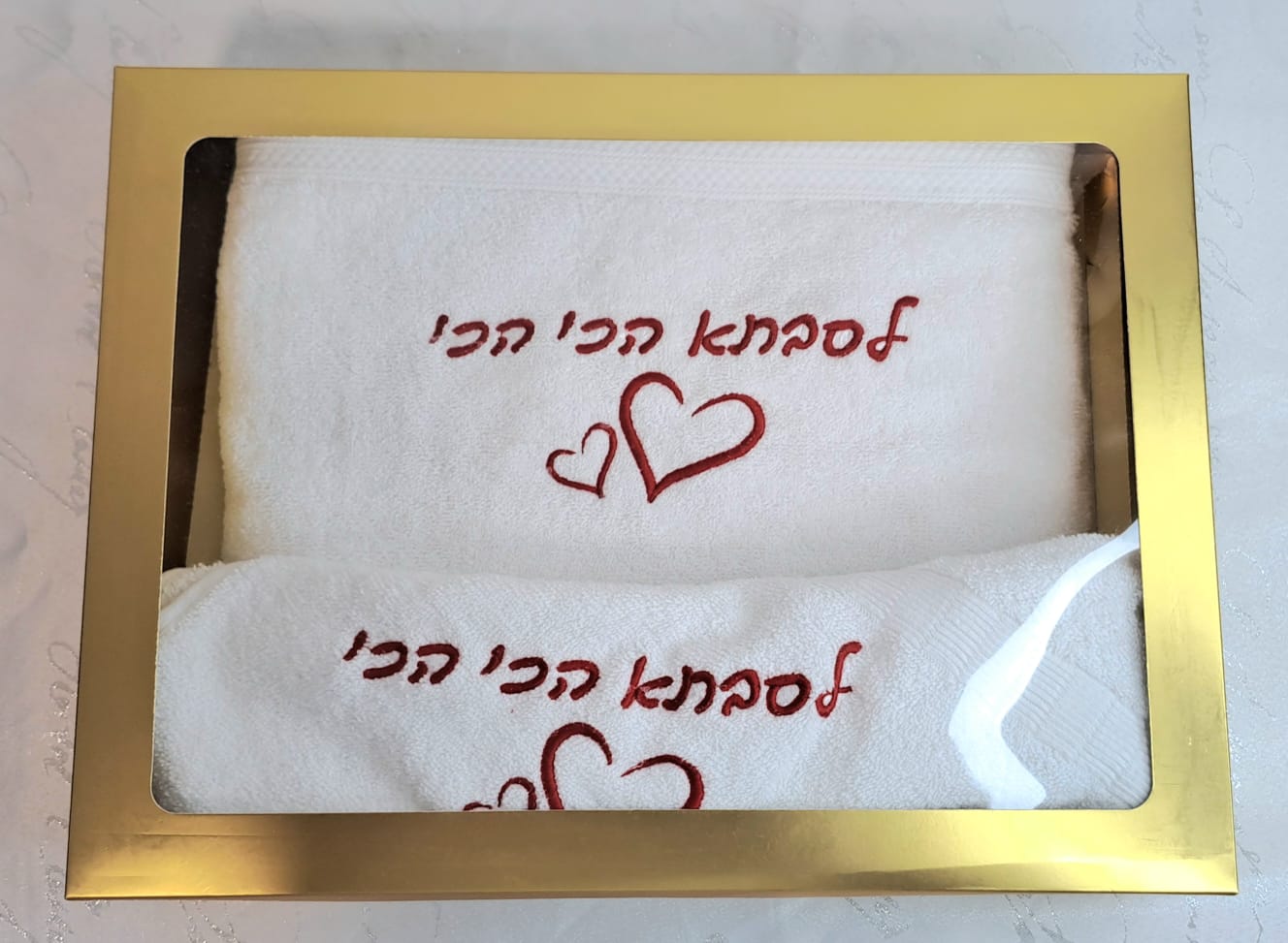 סט מגבות אישי, ואיכותי במיוחד. עם רקמה אישית לסבתא שמעריכים ואוהבים.